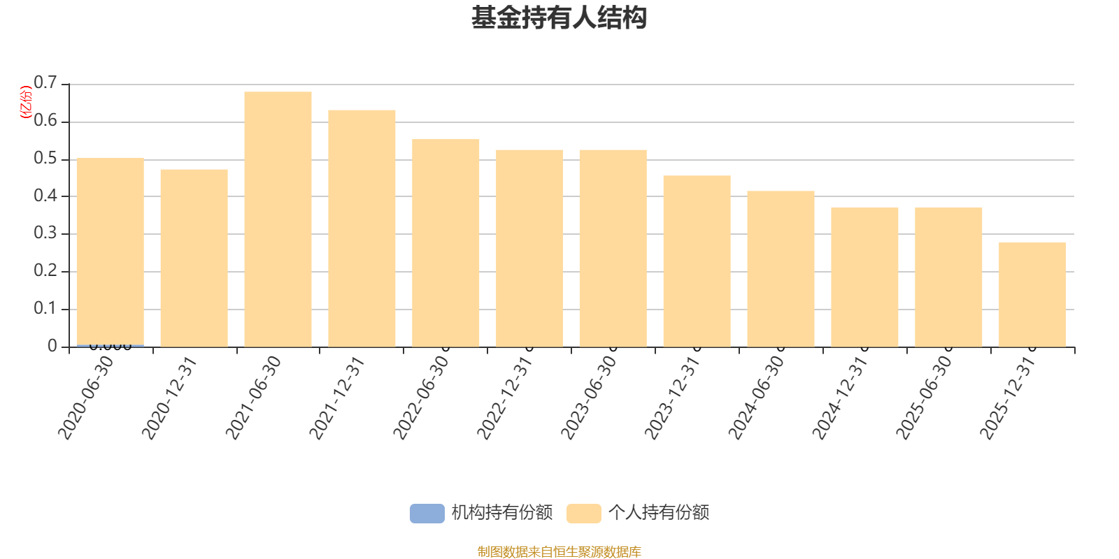 截至2025年12月31日,基金持有人共计7098户,合计持有2783.96万份。其中管理人员工持有20.12万份,占比0.72%,机构持有份额占比0.00%,个人投资者占比100.00%。