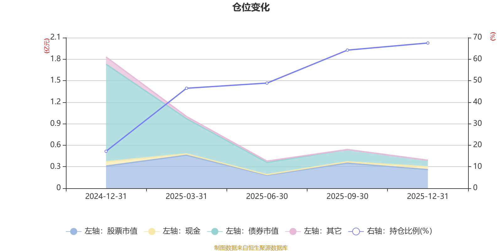 据定期报告数据统计,成立以来平均股票仓位为48.85%,同类平均为84.04%。2025年末基金达到67.52%的最高仓位,2024年末最低,为17.18%。