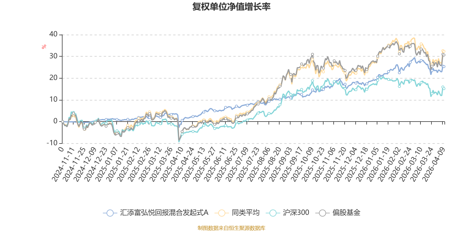 截至4月9日,汇添富弘悦回报混合发起式A近三个月复权单位净值增长率为3.32%,位于同类可比基金165/689;近半年复权单位净值增长率为9.38%,位于同类可比基金157/689;近一年复权单位净值增长率为26.53%,位于同类可比基金443/685。