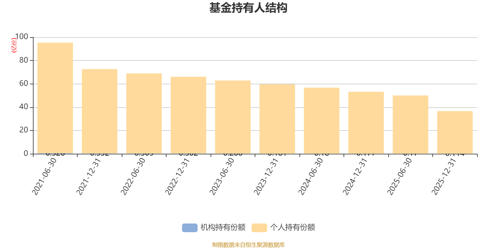 截至2025年12月31日,基金持有人共计90.68万户,合计持有36.67亿份。其中管理人员工持有9.65万份,机构持有份额占比0.31%,个人投资者占比99.69%。