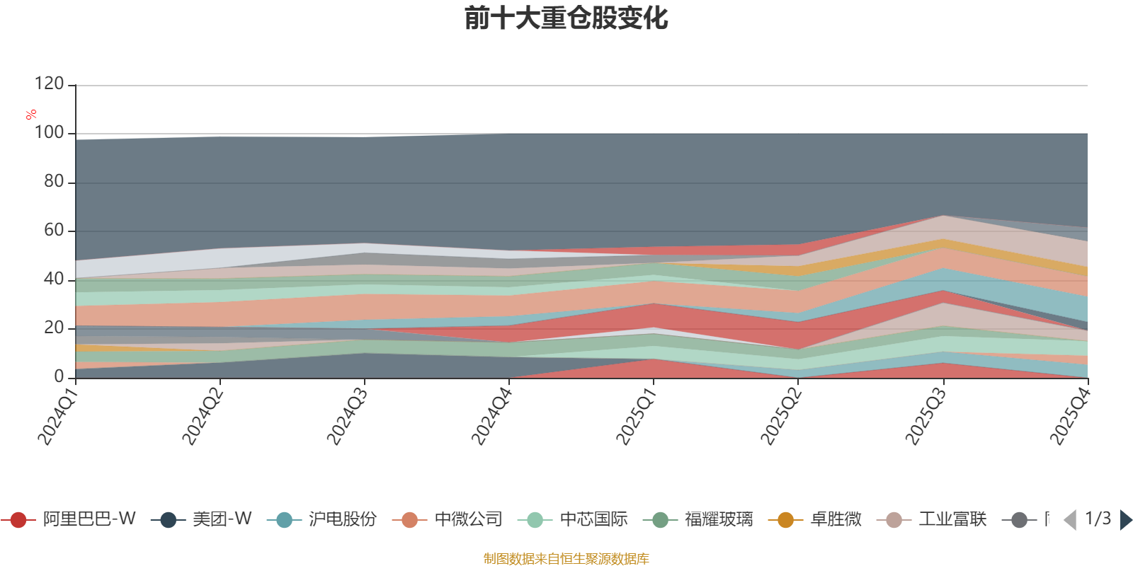 该基金持股集中度较高。截至2025年末,基金十大重仓股分别是中际旭创、新易盛、腾讯控股、中芯国际、生益科技、沪电股份、工业富联、北方华创、中微公司、深南电路。