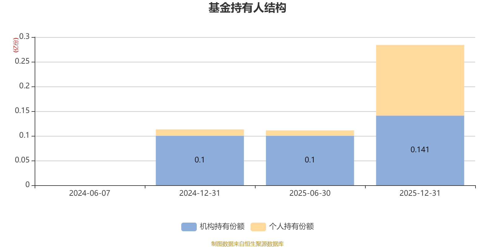 截至2025年12月31日,基金持有人共计47户,合计持有2844.26万份。其中管理人员工持有223.15万份,占比7.85%,机构持有份额占比49.60%,个人投资者占比50.40%。