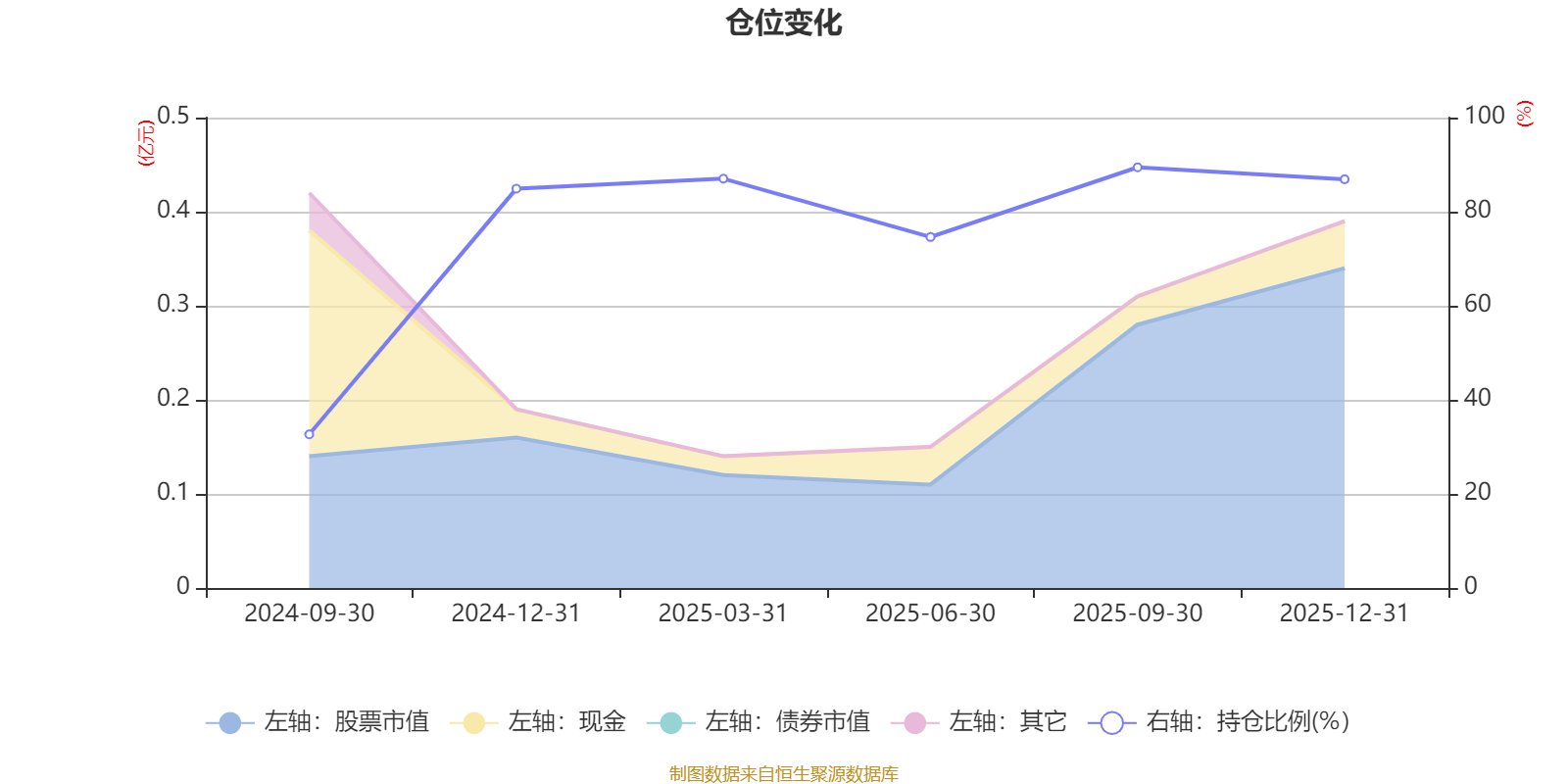 据定期报告数据统计,成立以来平均股票仓位为75.92%,同类平均为84.04%。2025年三季度末基金达到89.43%的最高仓位,2024年三季度末最低,为32.66%。
