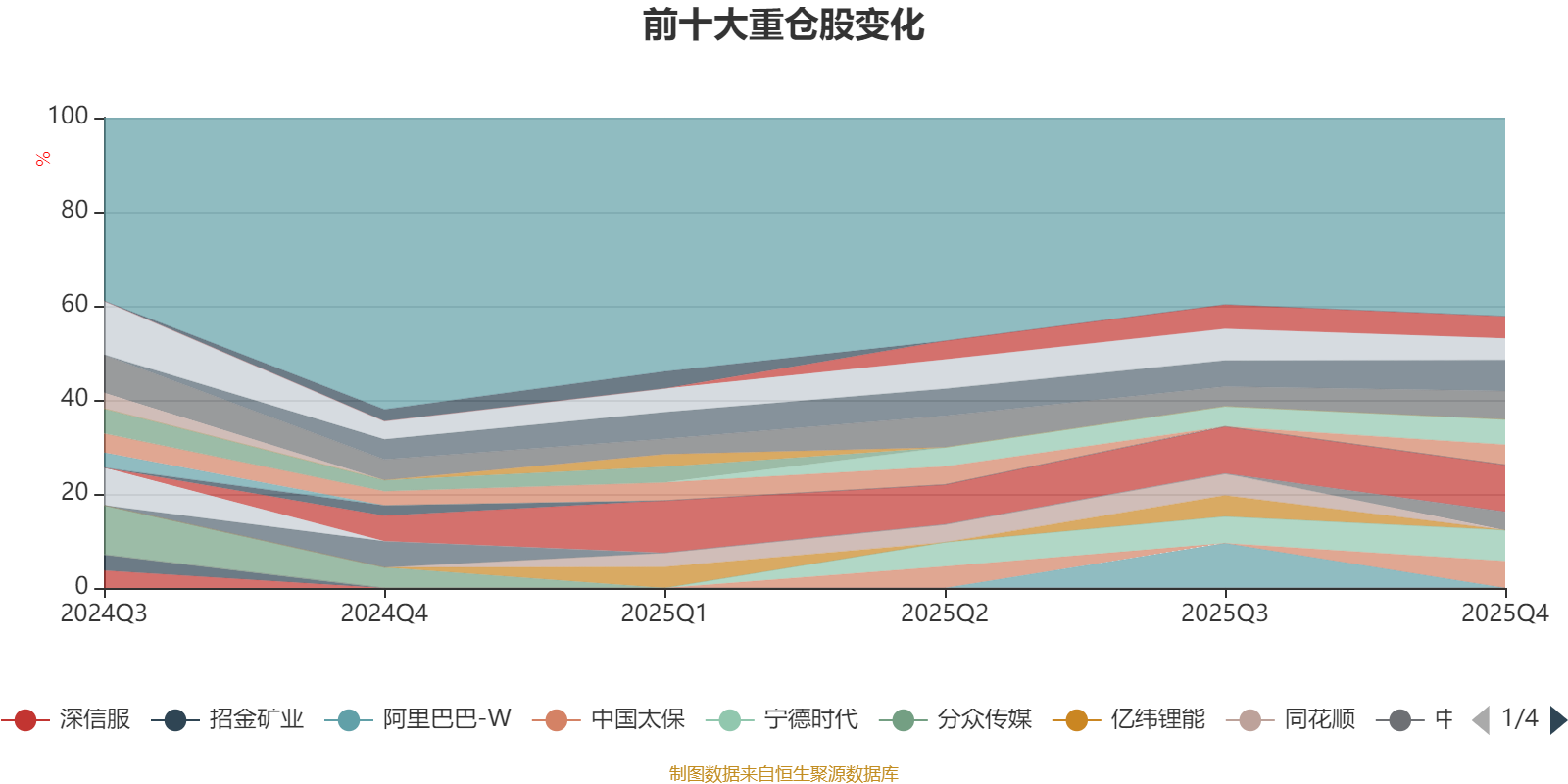 截至2025年末,基金十大重仓股分别是腾讯控股、恒瑞医药、宁德时代、招商银行、中国太保、泡泡玛特、中芯国际、紫金矿业、香港交易所、中国平安。