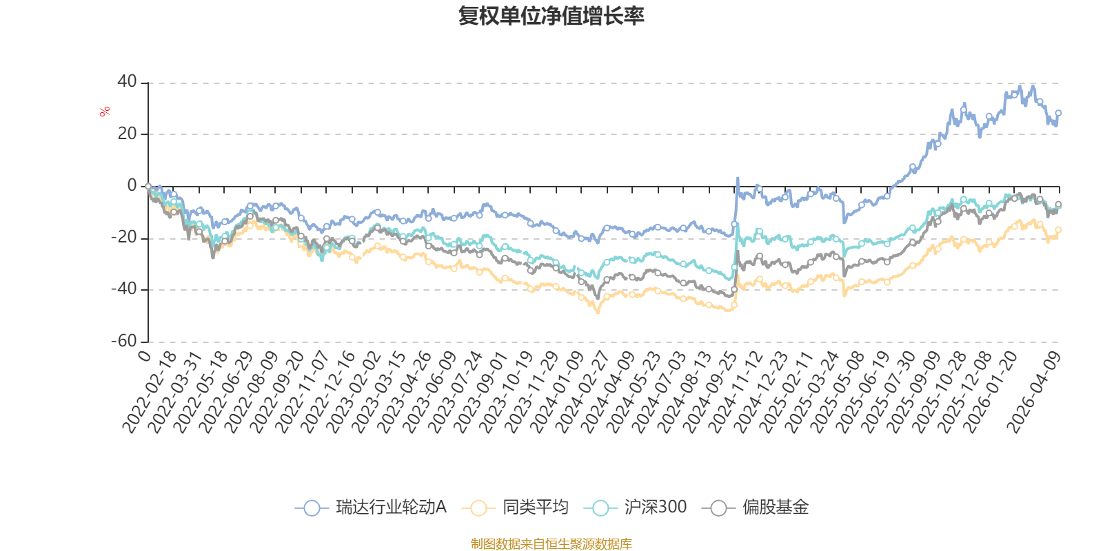 截至4月9日,瑞达行业轮动A近三个月复权单位净值增长率为-4.49%,位于同类可比基金486/689;近半年复权单位净值增长率为-1.27%,位于同类可比基金435/689;近一年复权单位净值增长率为47.76%,位于同类可比基金237/685;近三年复权单位净值增长率为44.06%,位于同类可比基金60/417。