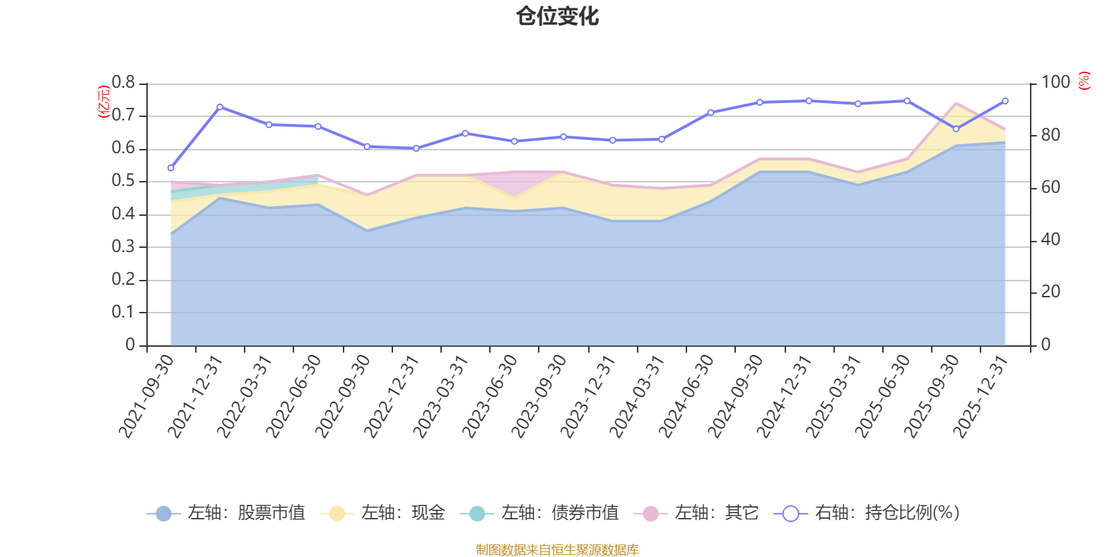据定期报告数据统计,近三年平均股票仓位为86.07%,同类平均为84.04%。2024年末基金达到93.42%的最高仓位,2021年三季度末最低,为67.82%。