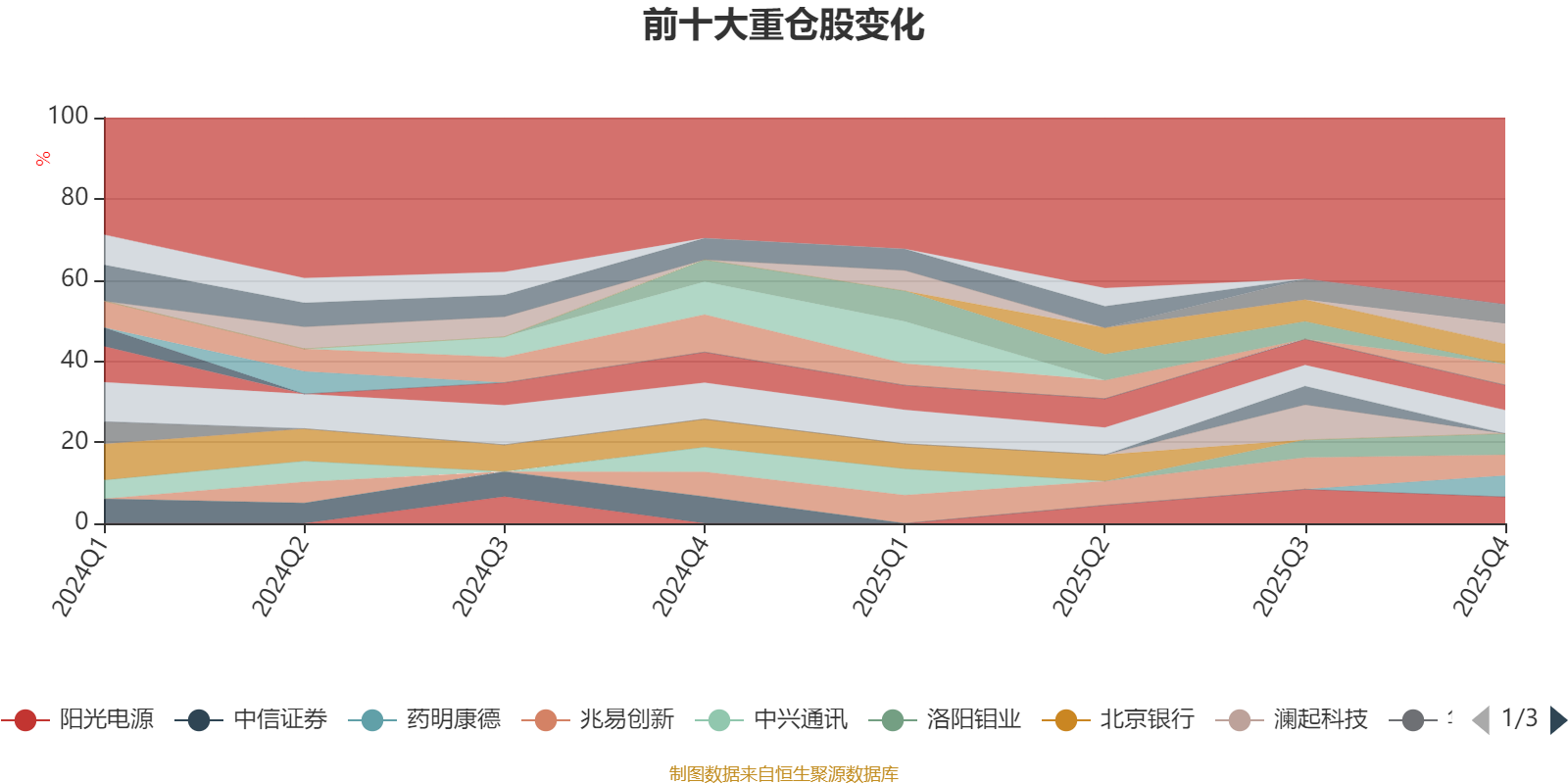 该基金持股集中度较高。截至2025年末,基金十大重仓股分别是阳光电源、华泰证券、中国平安、药明康德、洛阳钼业、国泰海通、兆易创新、立讯精密、北方华创、紫金矿业。