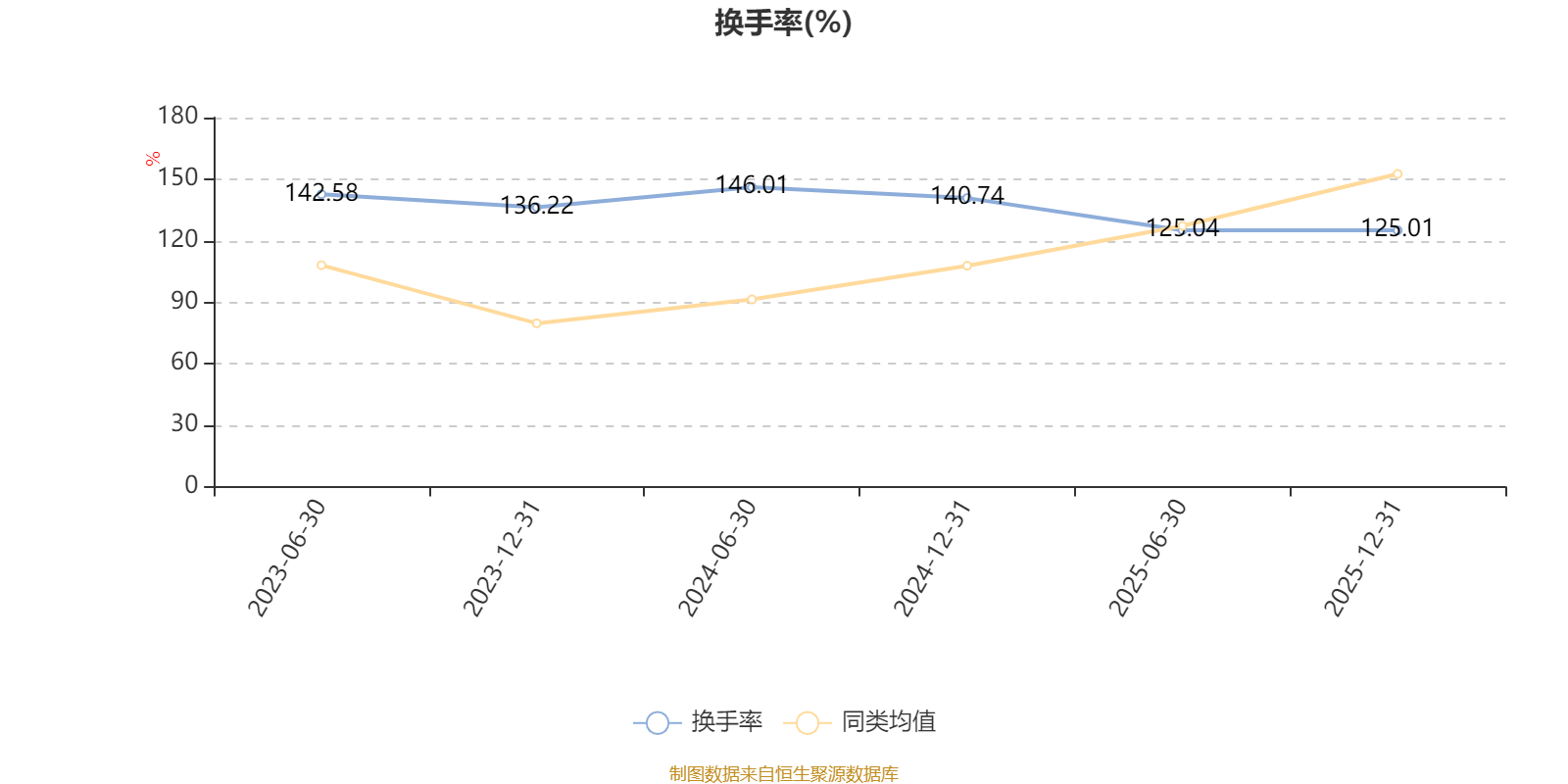 截至2025年12月31日,基金最近一年换手率约260.53%,持续1年低于同类均值。