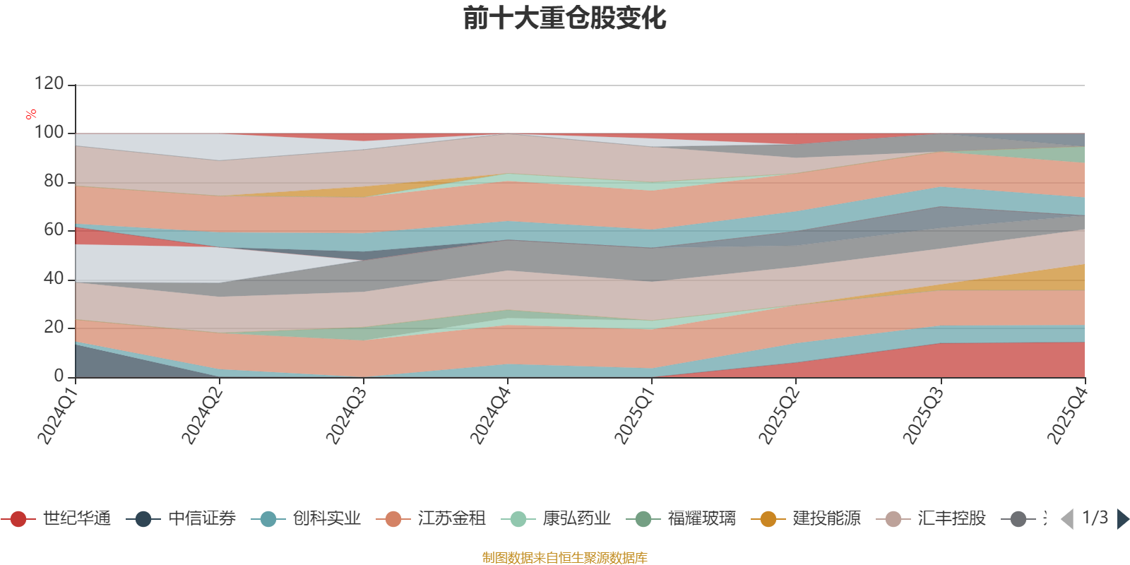 该基金持股集中度较高,近2年前十大重仓股集中度长期超过60%。截至2025年末,基金十大重仓股分别是世纪华通、汇丰控股、江苏金租、中国海洋石油、建投能源、海天国际、创科实业、渣打集团、兴蓉环境、南山铝业。