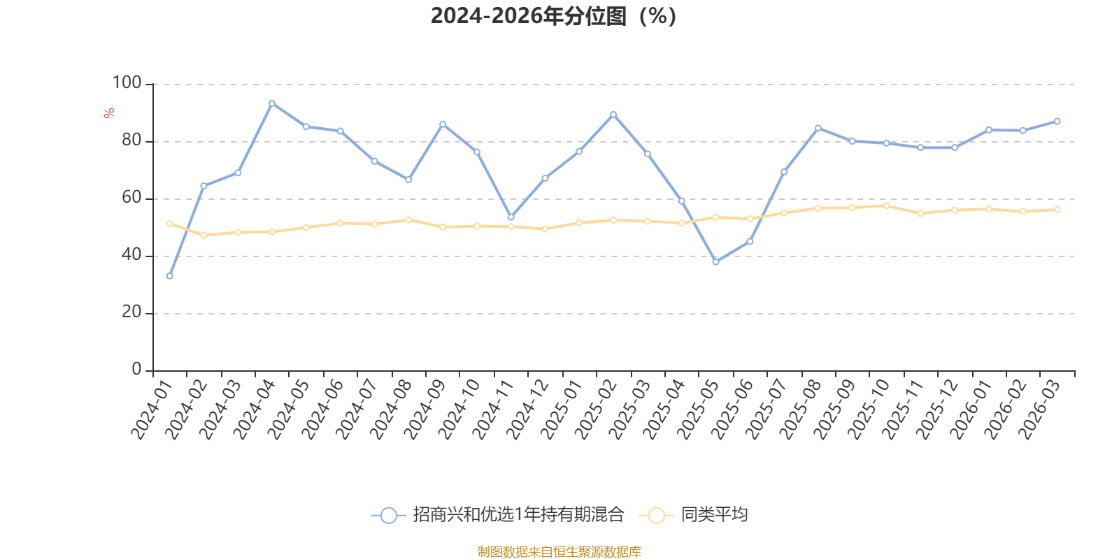 通过所选区间该基金净值增长率分位图,可以观察该基金与同类基金业绩比较情况。图为坐标原点到区间内某时点的净值增长率在同类基金中的分位数。
