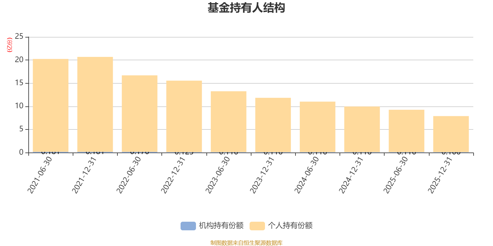 截至2025年12月31日,基金持有人共计2.08万户,合计持有7.9亿份。其中管理人员工持有38.09万份,占比0.05%,机构持有份额占比1.34%,个人投资者占比98.66%。