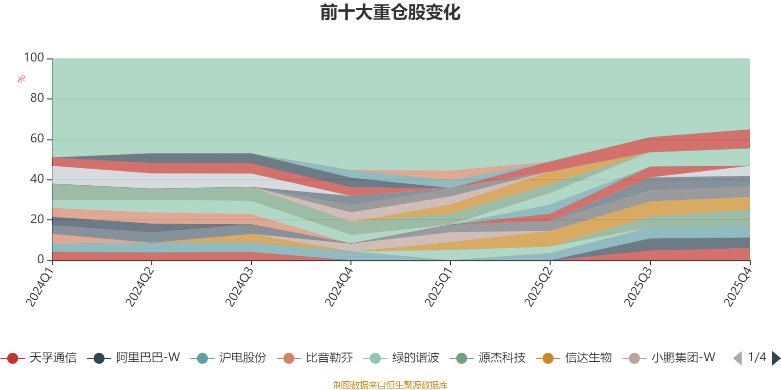 截至2025年末,基金十大重仓股分别是中际旭创、新易盛、源杰科技、信达生物、天孚通信、沪电股份、工业富联、阿里巴巴-W、百济神州、东山精密。