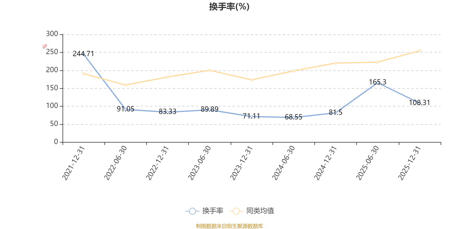 截至2025年12月31日,基金最近一年换手率约265.23%,持续4年低于同类均值。