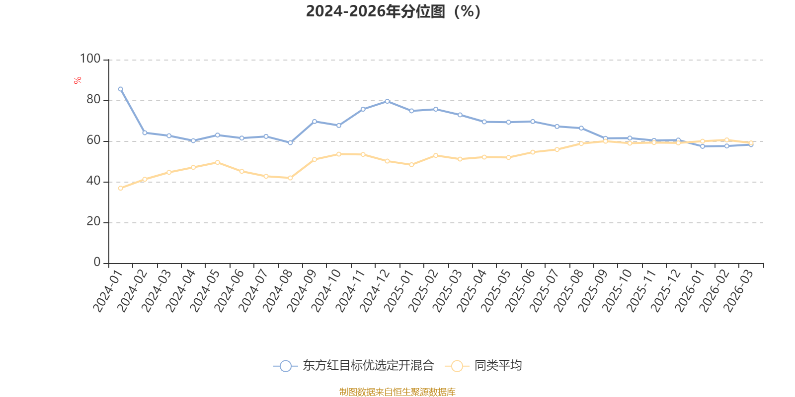 通过所选区间该基金净值增长率分位图,可以观察该基金与同类基金业绩比较情况。图为坐标原点到区间内某时点的净值增长率在同类基金中的分位数。