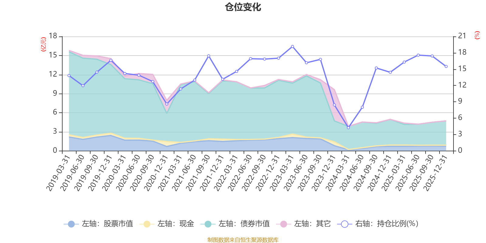 据定期报告数据统计,近三年平均股票仓位为14.1%,同类平均为19.2%。2023年一季度末基金达到19.16%的最高仓位,2024年一季度末最低,为4.24%。