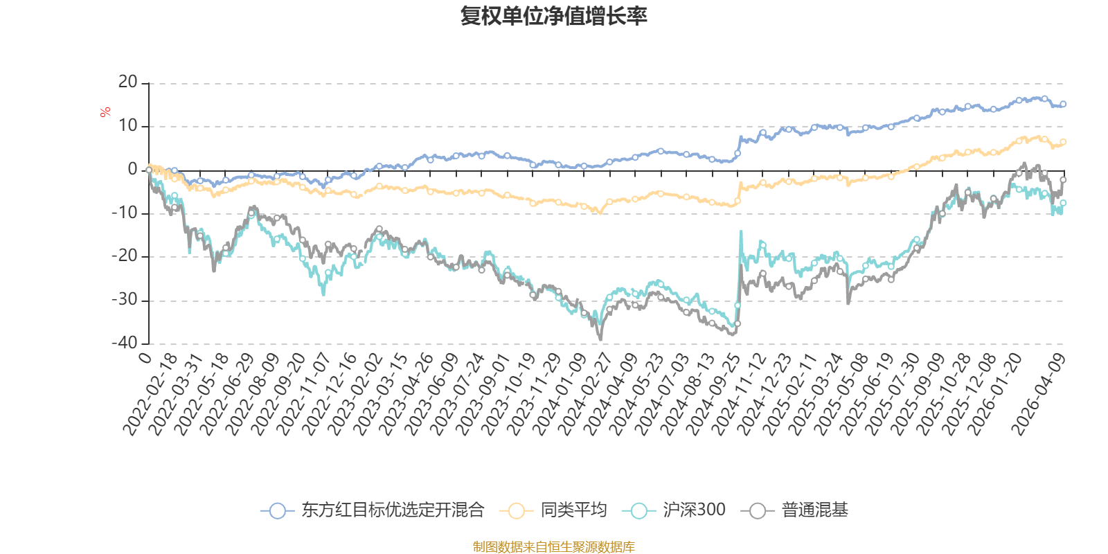 截至4月9日,东方红目标优选定开混合近三个月复权单位净值增长率为-0.25%,位于同类可比基金400/629;近半年复权单位净值增长率为0.29%,位于同类可比基金421/629;近一年复权单位净值增长率为6.21%,位于同类可比基金372/629;近三年复权单位净值增长率为12.10%,位于同类可比基金244/581。