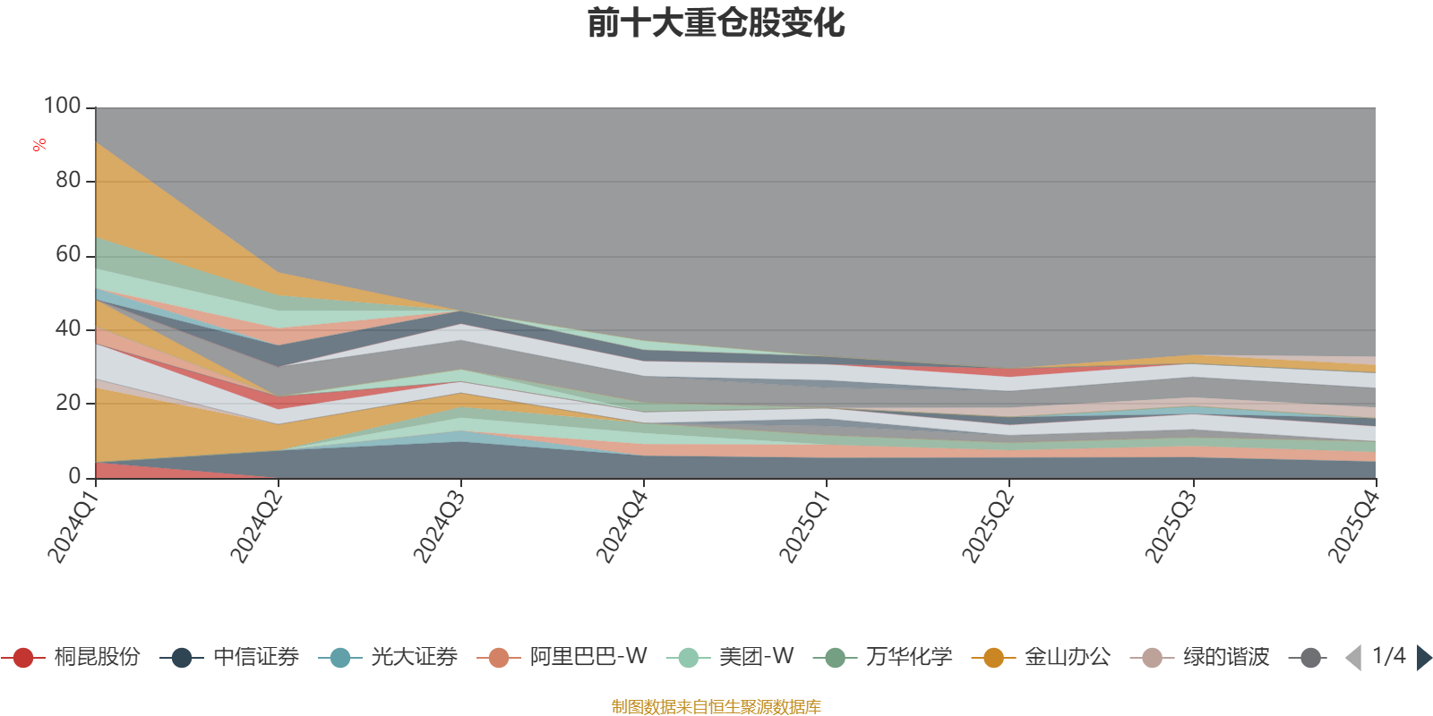 截至2025年末,基金十大重仓股分别是腾讯控股、中信证券、美的集团、宁德时代、中国石油化工股份、万华化学、阿里巴巴-W、兴业银行、国电南瑞、紫金矿业。