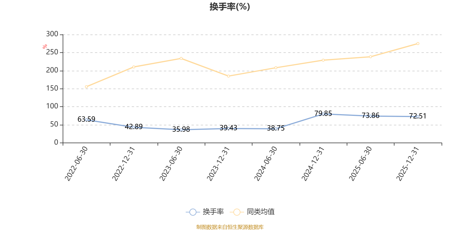 截至2025年12月31日,基金最近一年换手率约146.33%,持续低于同类均值。