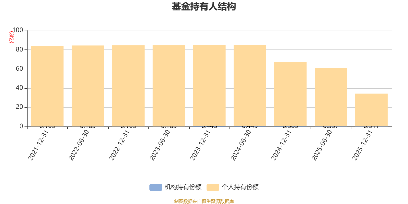 截至2025年12月31日,基金持有人共计3.75万户,合计持有34.43亿份。其中管理人员工持有40.19万份,占比0.01%,机构持有份额占比0.90%,个人投资者占比99.10%。