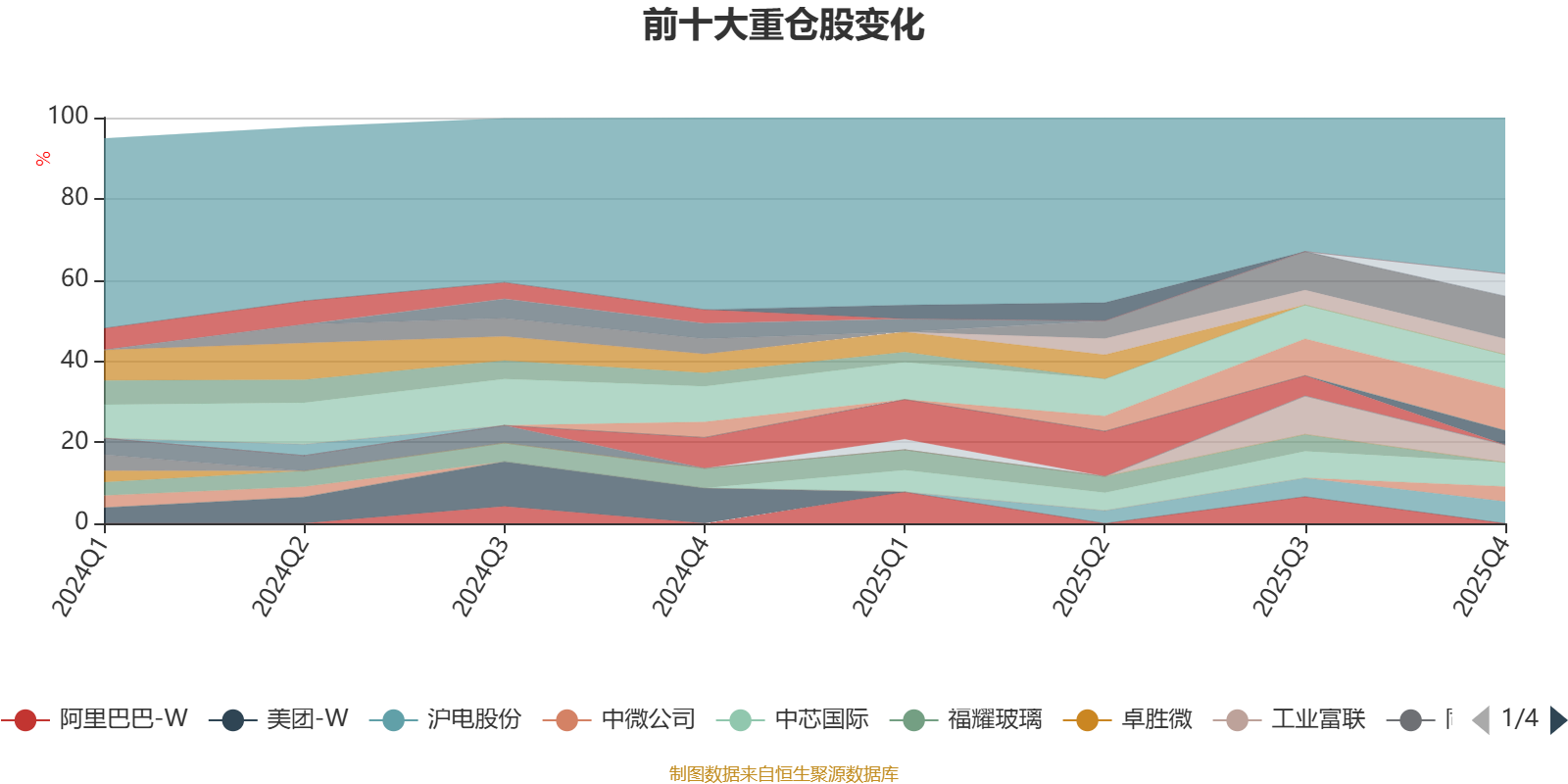 该基金持股集中度较高。截至2025年末,基金十大重仓股分别是中际旭创、新易盛、腾讯控股、中芯国际、生益科技、沪电股份、工业富联、北方华创、中微公司、深南电路。