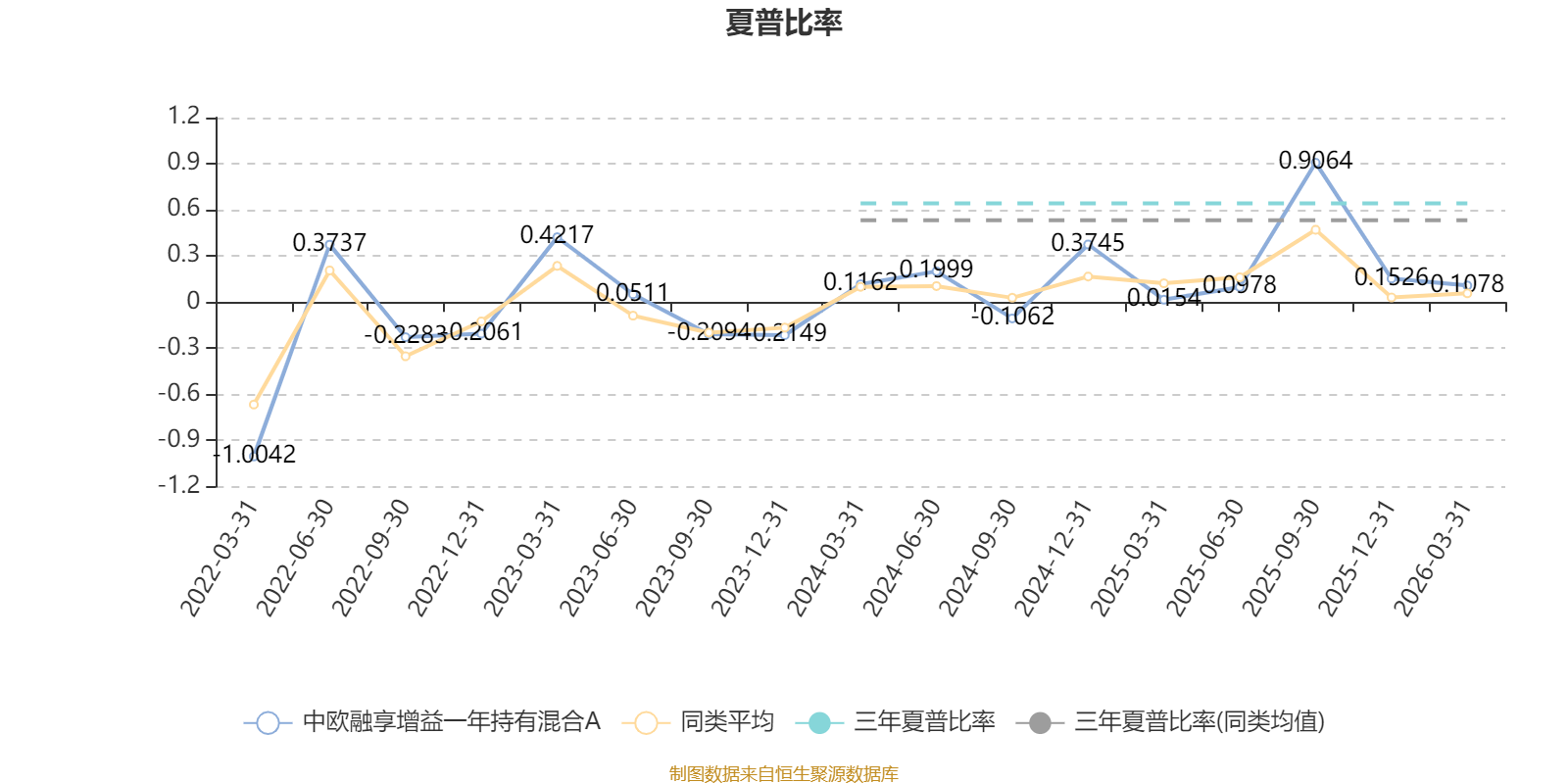 截至3月31日,基金近三年夏普比率为0.6424,位于同类可比基金238/550。