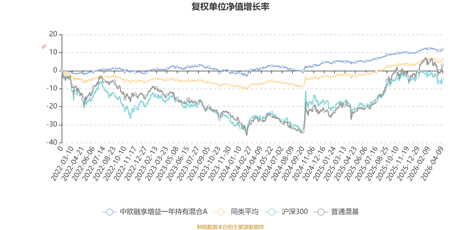 截至4月9日,中欧融享增益一年持有混合A近三个月复权单位净值增长率为0.28%,位于同类可比基金289/629;近半年复权单位净值增长率为1.58%,位于同类可比基金237/629;近一年复权单位净值增长率为7.24%,位于同类可比基金309/629;近三年复权单位净值增长率为9.30%,位于同类可比基金346/581。