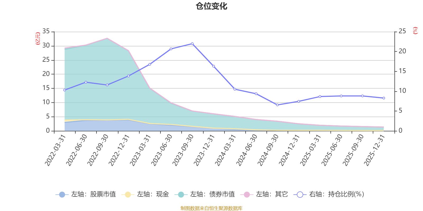 据定期报告数据统计,近三年平均股票仓位为12.01%,同类平均为19.2%。2023年三季度末基金达到21.97%的最高仓位,2024年三季度末最低,为6.56%。