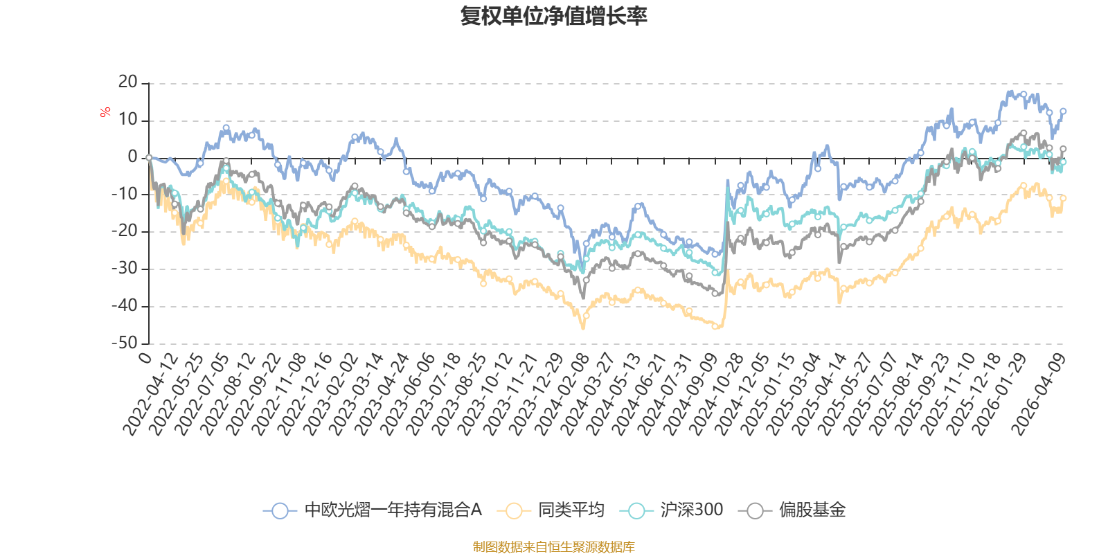 该基金属于偏股混合型基金。截至4月9日,单位净值为1.125元。基金经理是王健,目前管理的8只基金近一年均为正收益。其中,截至4月9日,中欧价值成长混合A近一年复权单位净值增长率最高,达36.23%;中欧光熠一年持有混合A最低,为25.21%。