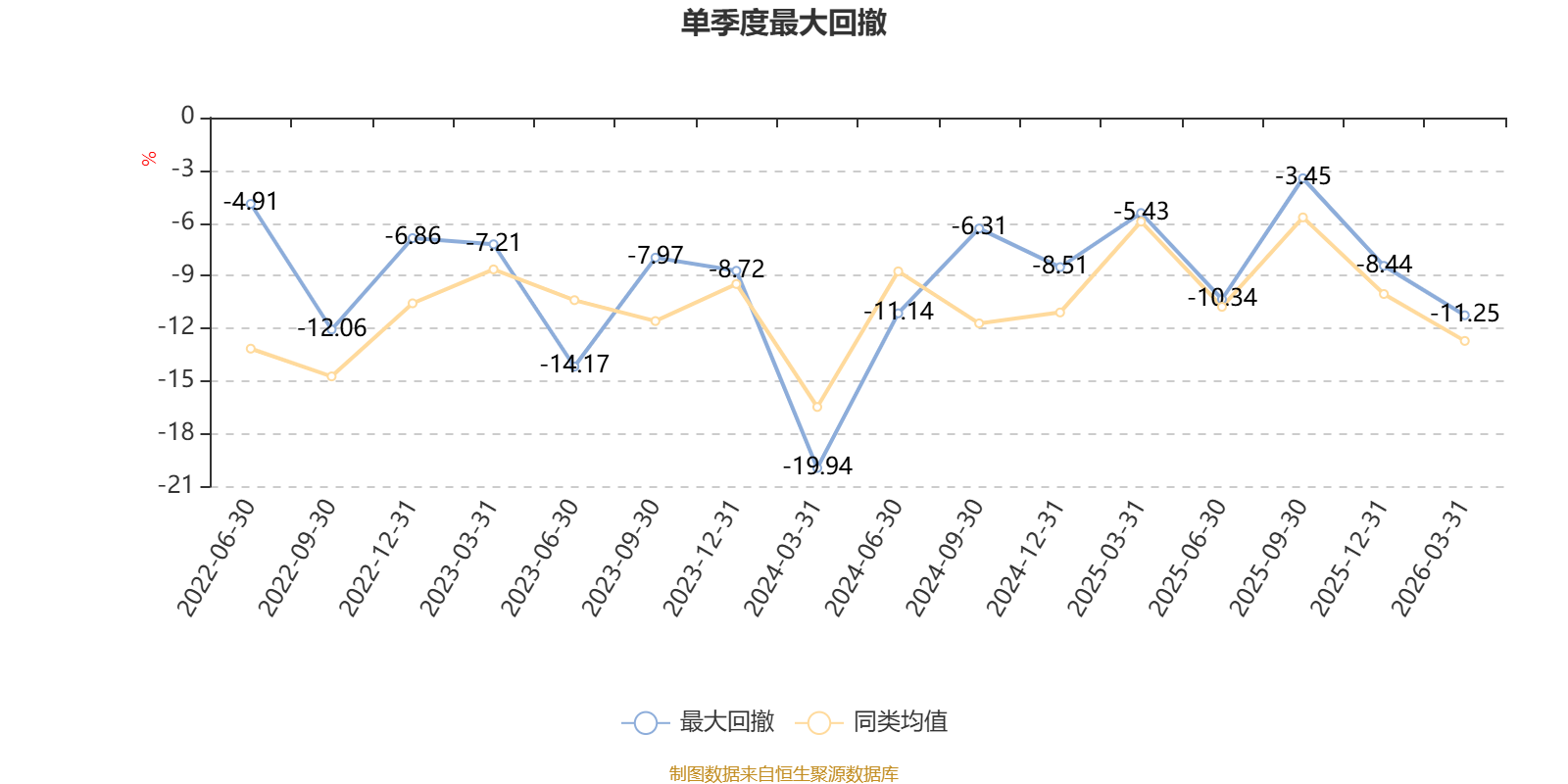 截至4月9日,基金近三年最大回撤为34.29%,同类可比基金排名317/549。单季度最大回撤出现在2024年一季度,为19.94%。