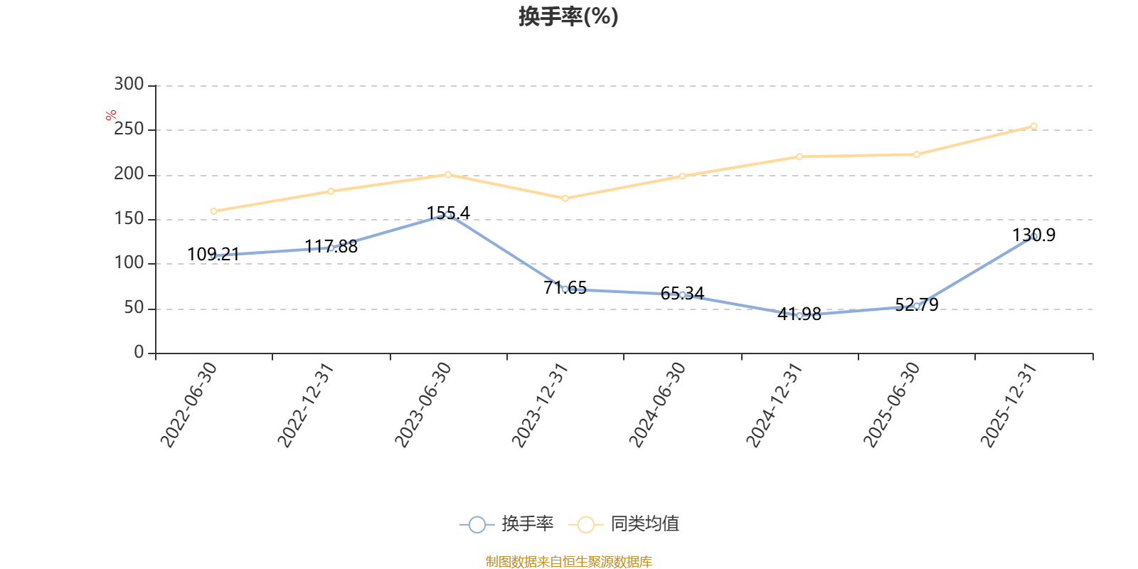 截至2025年12月31日,基金最近一年换手率约187.22%,持续低于同类均值。