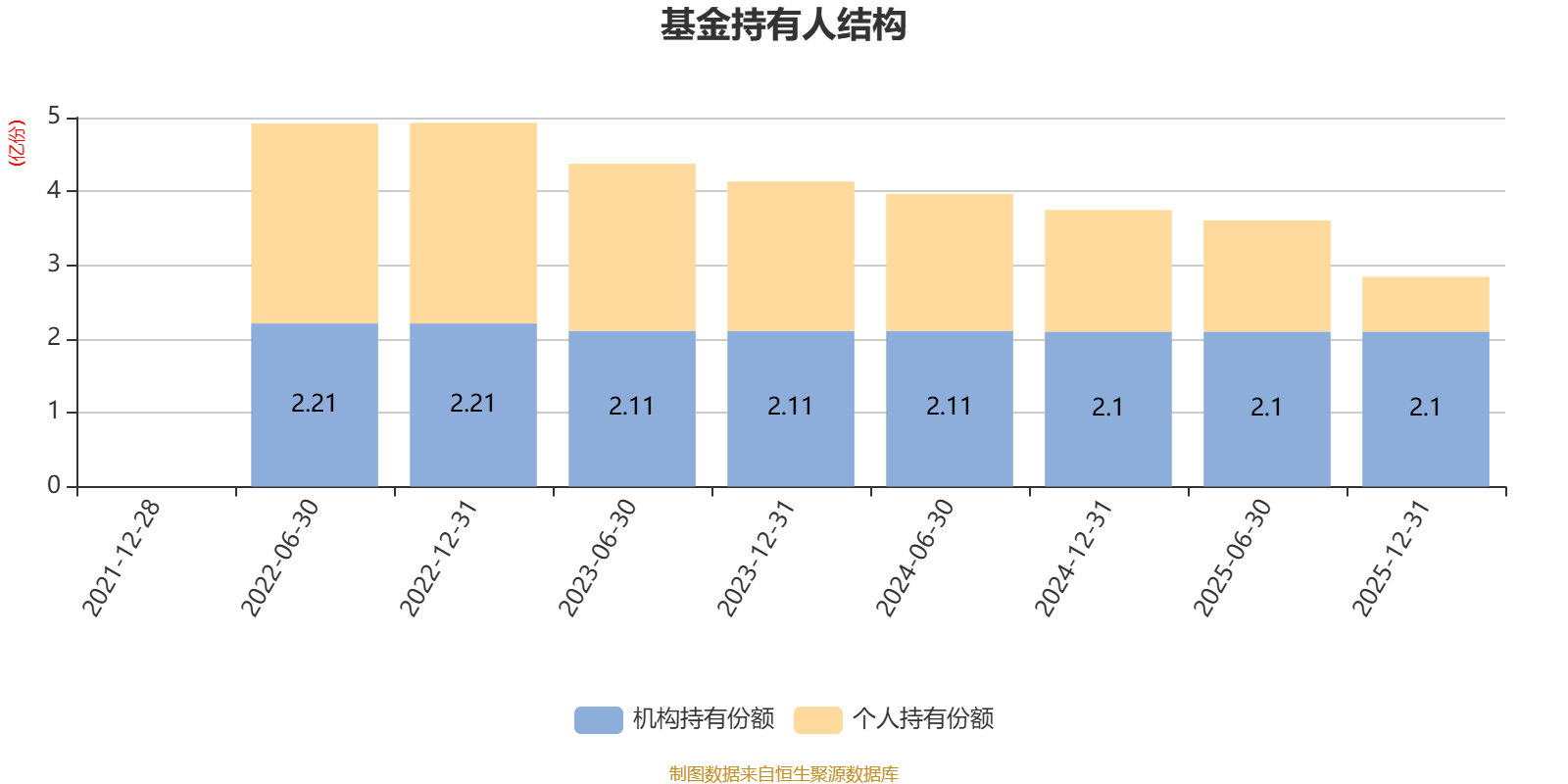 截至2025年12月31日,基金持有人共计1653户,合计持有2.84亿份。其中管理人员工持有520.28万份,占比1.83%,机构持有份额占比73.90%,个人投资者占比26.10%。
