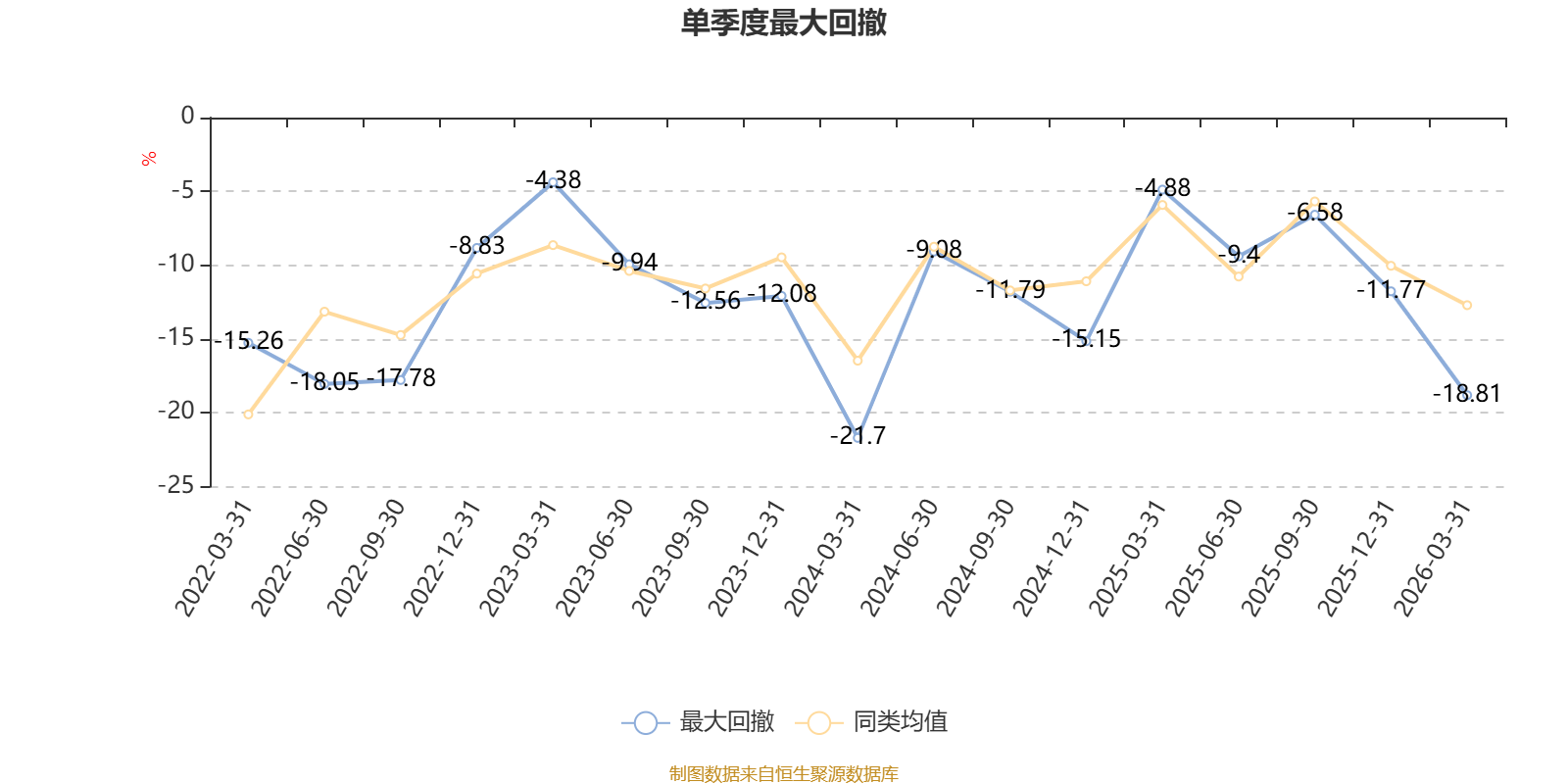 截至4月9日,基金近三年最大回撤为39.39%,同类可比基金排名438/549。单季度最大回撤出现在2024年一季度,为21.7%。