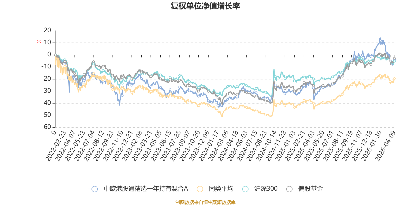 截至4月9日,中欧港股通精选一年持有混合A近三个月复权单位净值增长率为-7.86%,位于同类可比基金533/621;近半年复权单位净值增长率为-7.04%,位于同类可比基金498/621;近一年复权单位净值增长率为49.10%,位于同类可比基金209/618;近三年复权单位净值增长率为26.84%,位于同类可比基金198/559。