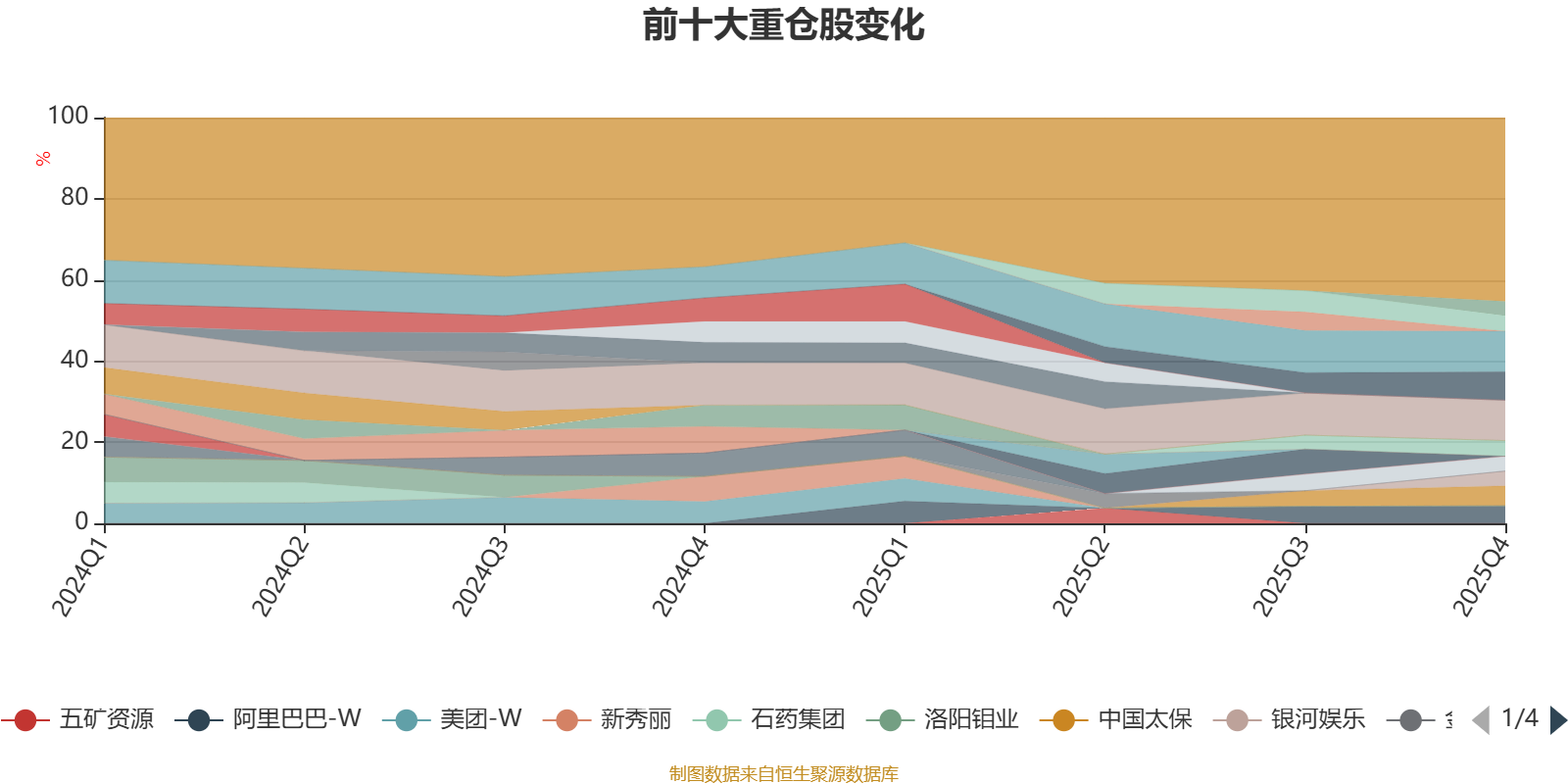 该基金持股集中度较高。截至2025年末,基金十大重仓股分别是紫金矿业、腾讯控股、中国人寿、中国太保、阿里巴巴-W、恒隆地产、中国黄金国际、银河娱乐、贝壳-W、百胜中国。