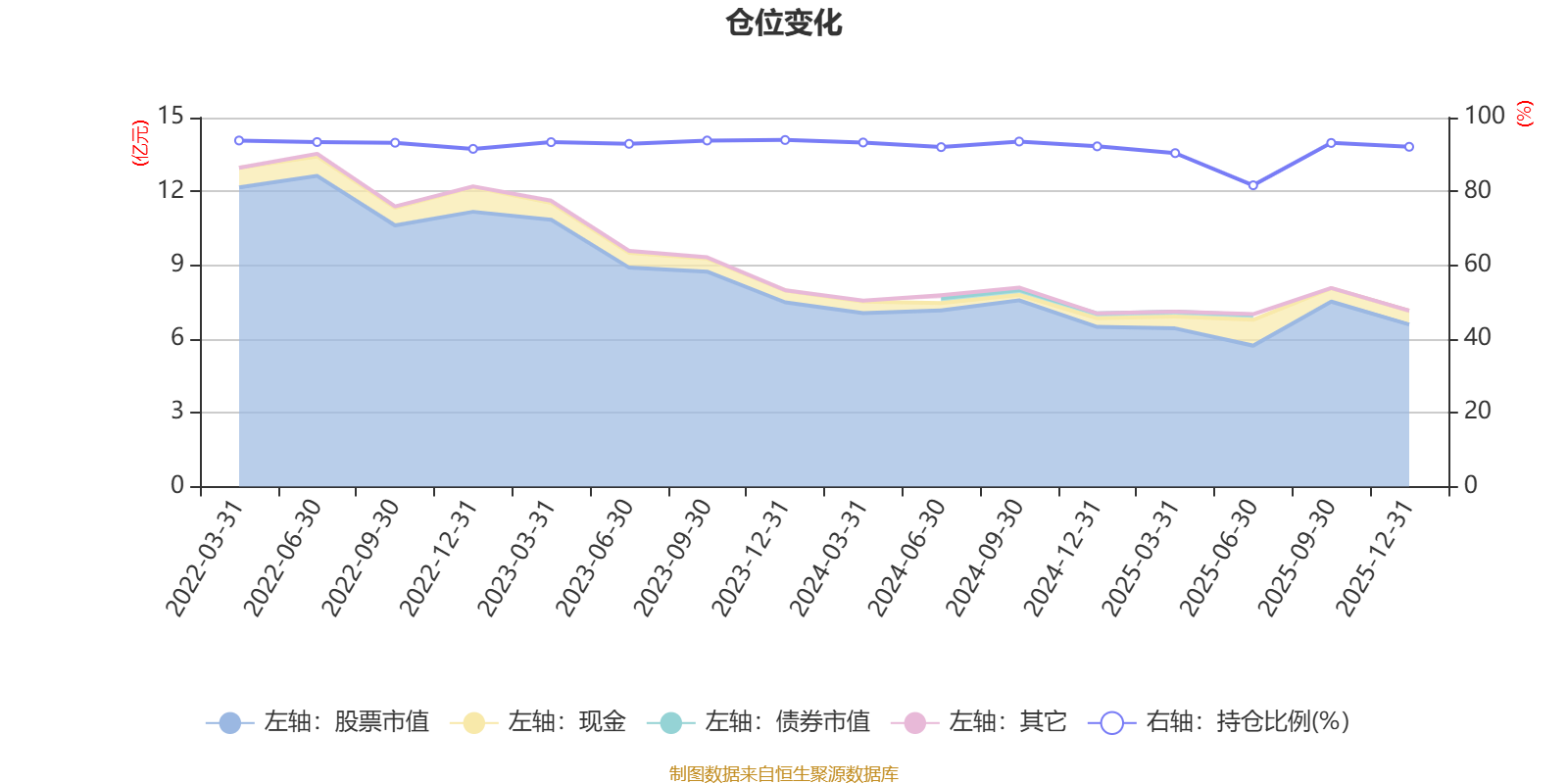 据定期报告数据统计,近三年平均股票仓位为91.85%,同类平均为85.83%。2023年末基金达到93.93%的最高仓位,2025年上半年末最低,为81.65%。