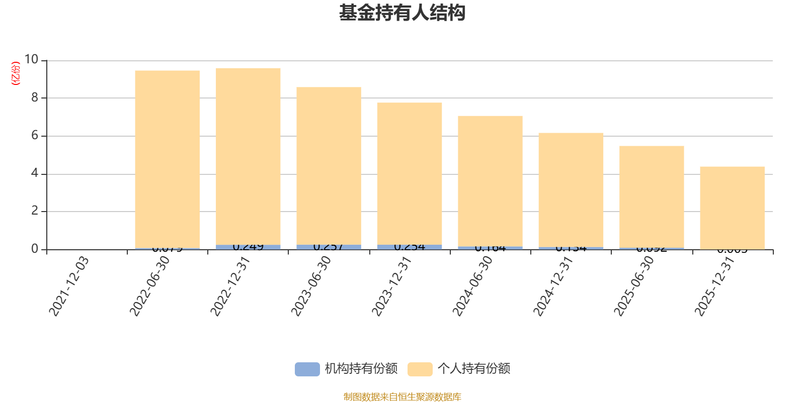 截至2025年12月31日,基金持有人共计4840户,合计持有4.38亿份。其中管理人员工持有378.57万份,占比0.86%,机构持有份额占比0.07%,个人投资者占比99.93%。