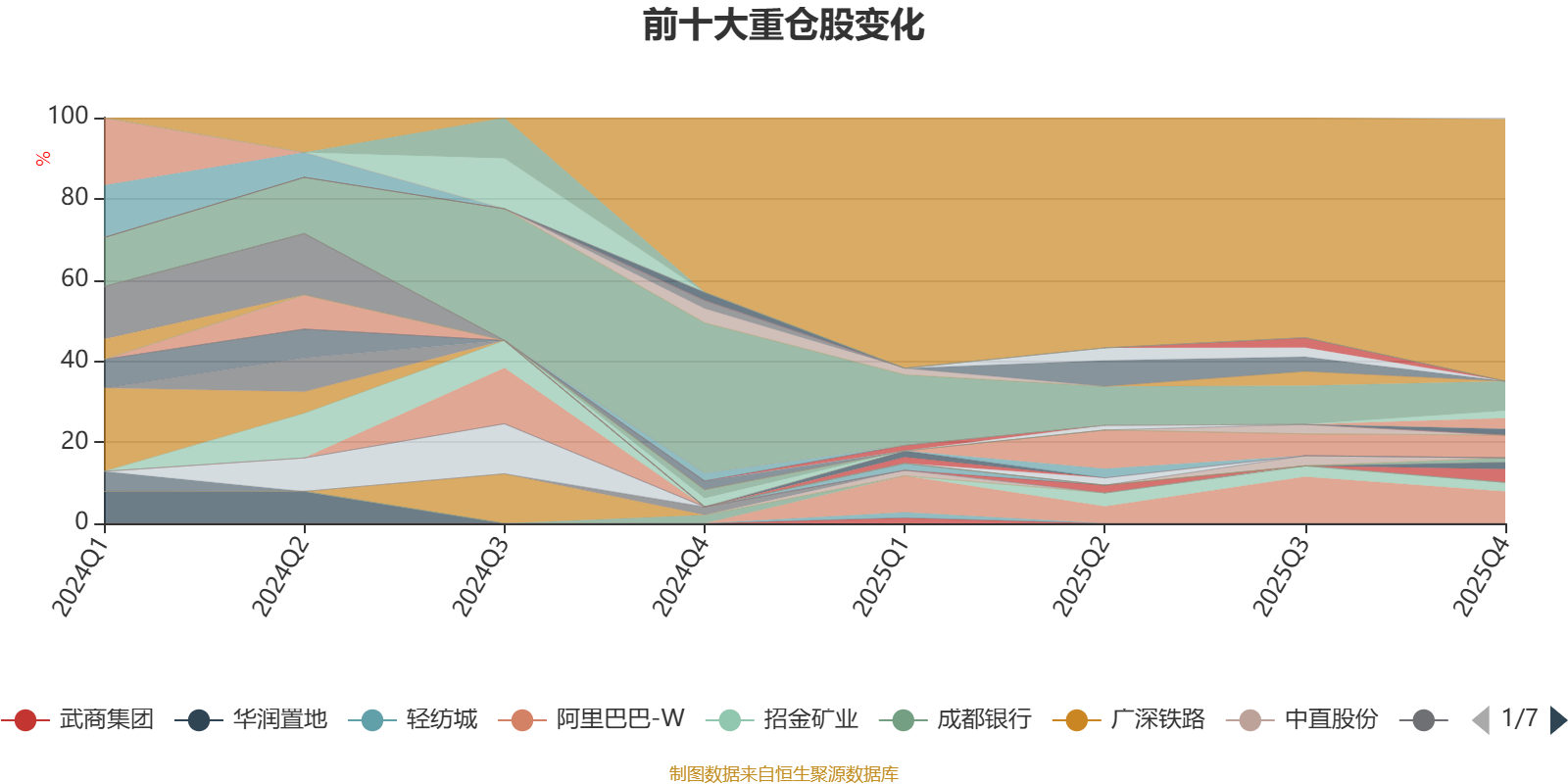 截至2025年末,基金十大重仓股分别是阿里巴巴-W、腾讯控股、中国平安、美团-W、中国海洋石油、招金矿业、山东出版、南方传媒、梅花生物、英搏尔。