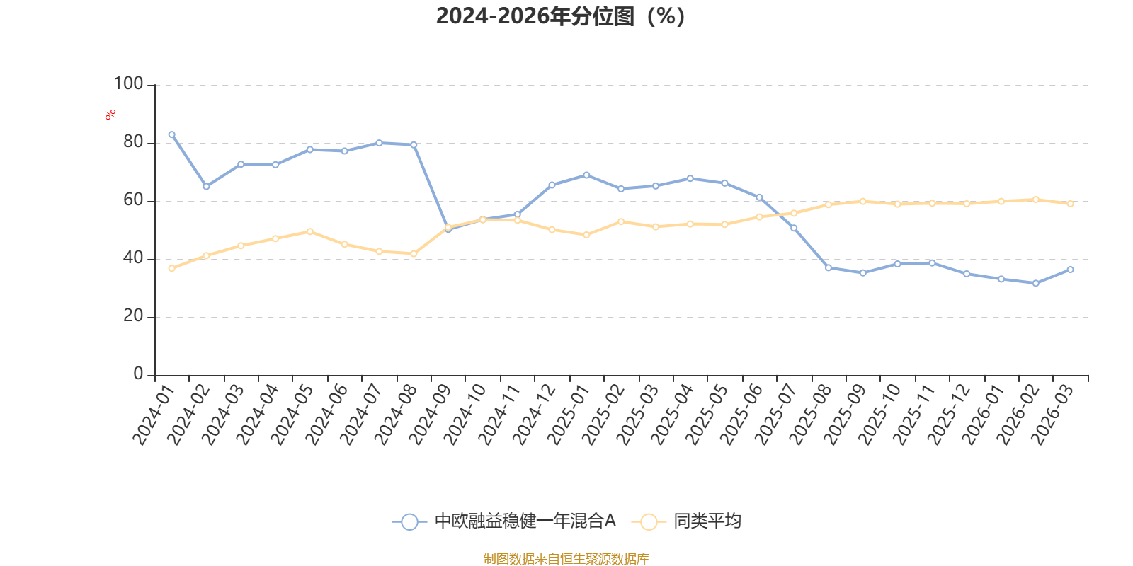 通过所选区间该基金净值增长率分位图,可以观察该基金与同类基金业绩比较情况。图为坐标原点到区间内某时点的净值增长率在同类基金中的分位数。