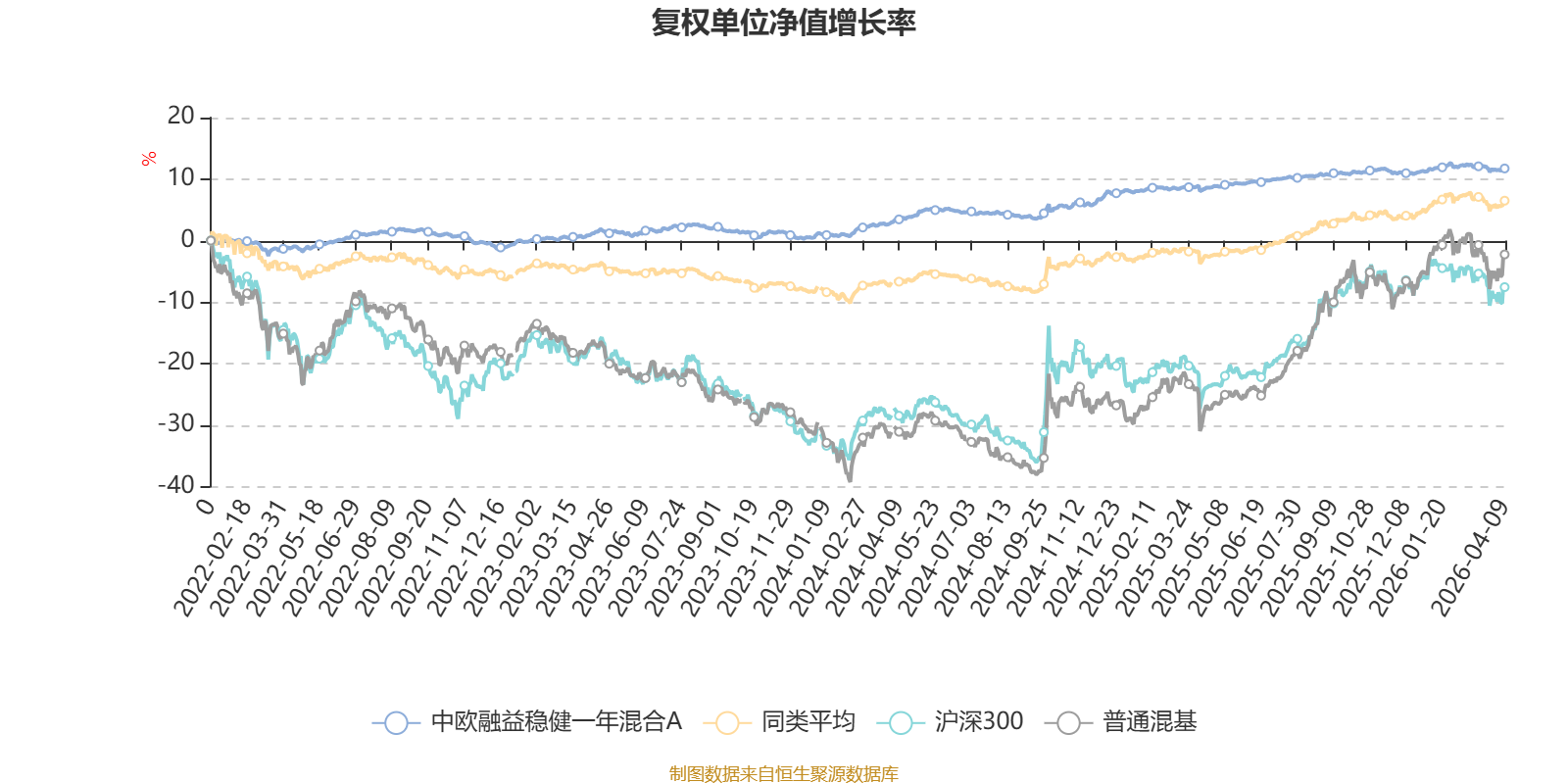 截至4月9日,中欧融益稳健一年混合A近三个月复权单位净值增长率为0.09%,位于同类可比基金329/629;近半年复权单位净值增长率为0.40%,位于同类可比基金406/629;近一年复权单位净值增长率为3.26%,位于同类可比基金537/629;近三年复权单位净值增长率为10.43%,位于同类可比基金300/581。