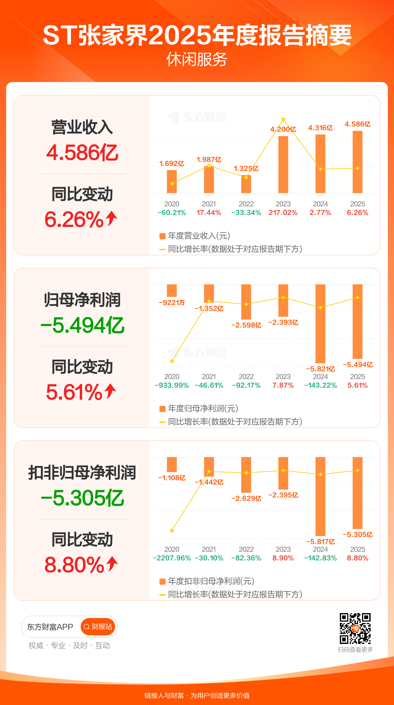 图解财报:ST张家界全年归母净利润-5.49亿元,上年同期-5.82亿元