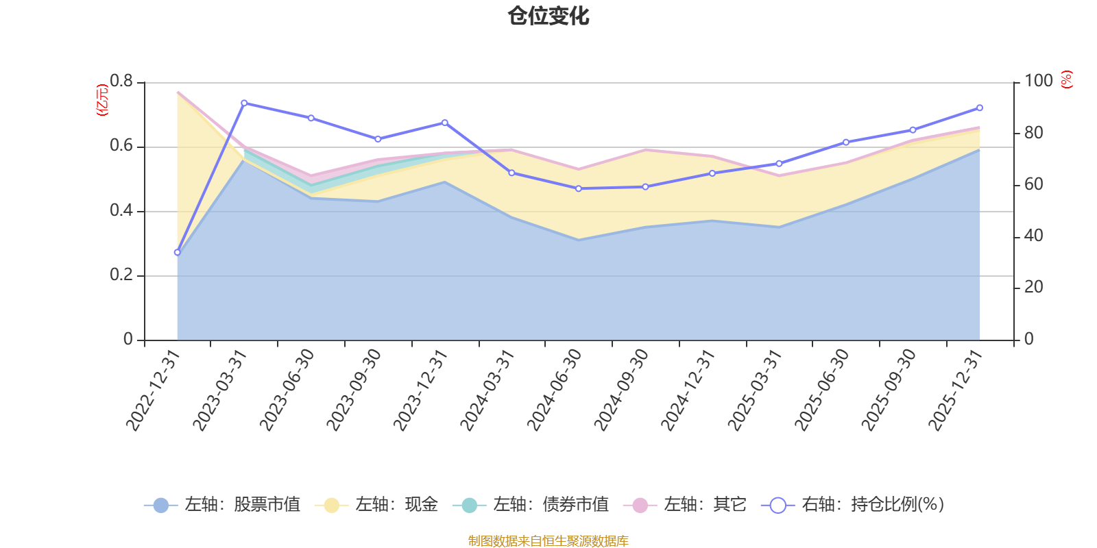 据定期报告数据统计,近三年平均股票仓位为75.4%,同类平均为84.04%。2023年一季度末基金达到91.93%的最高仓位,2022年末最低,为34.05%。