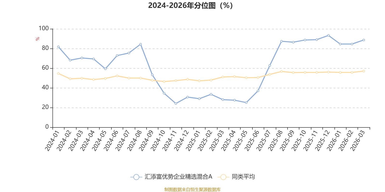 通过所选区间该基金净值增长率分位图,可以观察该基金与同类基金业绩比较情况。图为坐标原点到区间内某时点的净值增长率在同类基金中的分位数。
