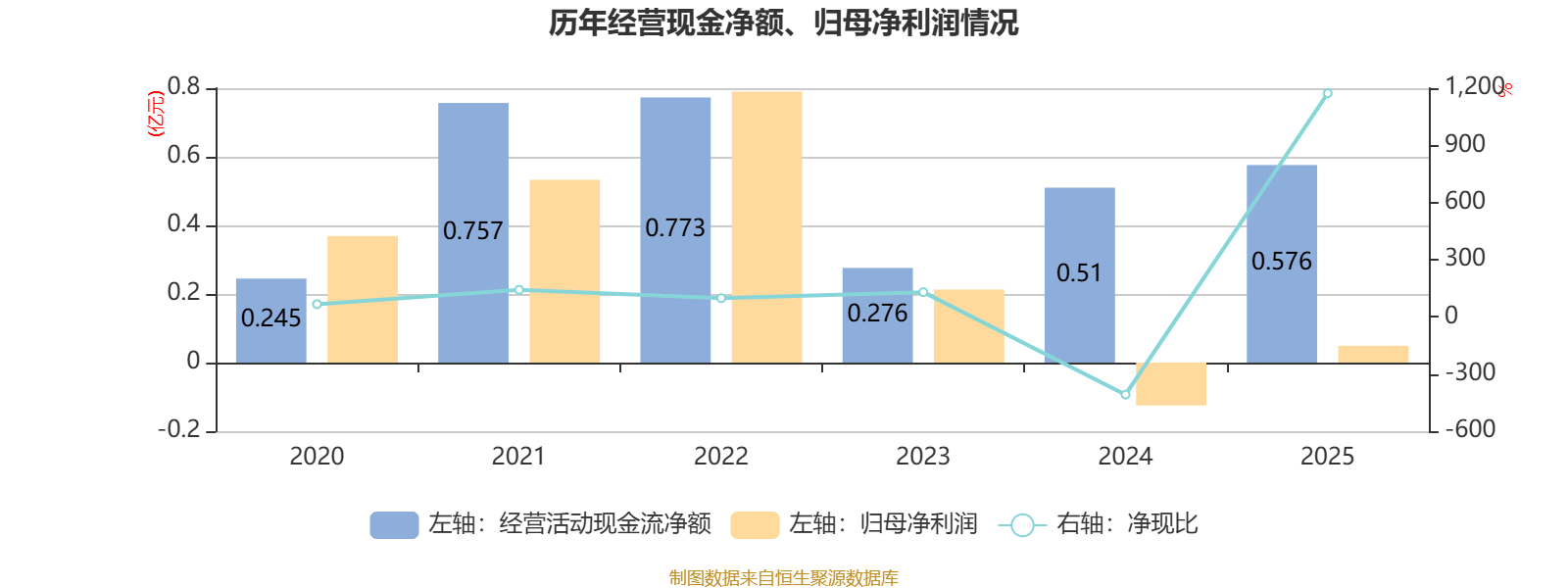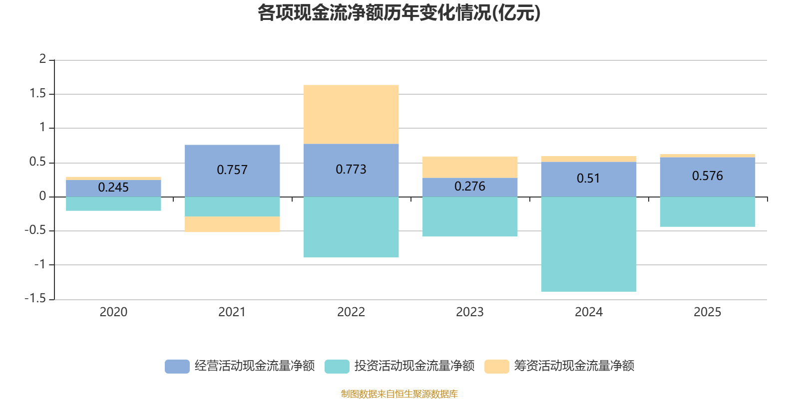 2025年,公司经营活动现金流净额为5756万元,同比增长12.81%;筹资活动现金流净额462万元,同比减少369.7万元;投资活动现金流净额-4411.1万元,上年同期为-1.39亿元。
