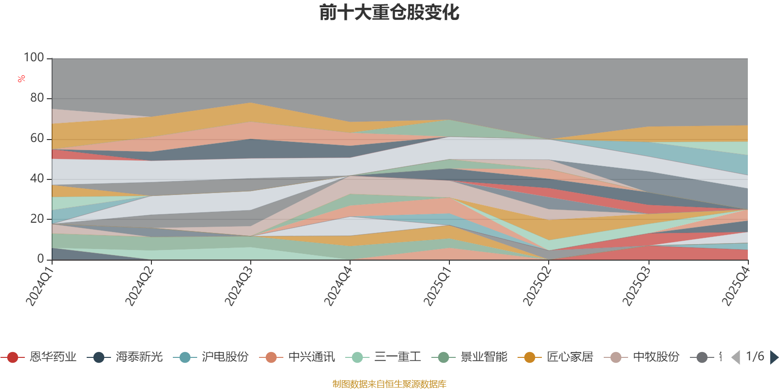 该基金持股集中度较高。截至2025年末,基金十大重仓股分别是立讯精密、上海新阳、立华股份、中际旭创、百亚股份、中国海油、盐湖股份、寒武纪、恩华药业、沪电股份。