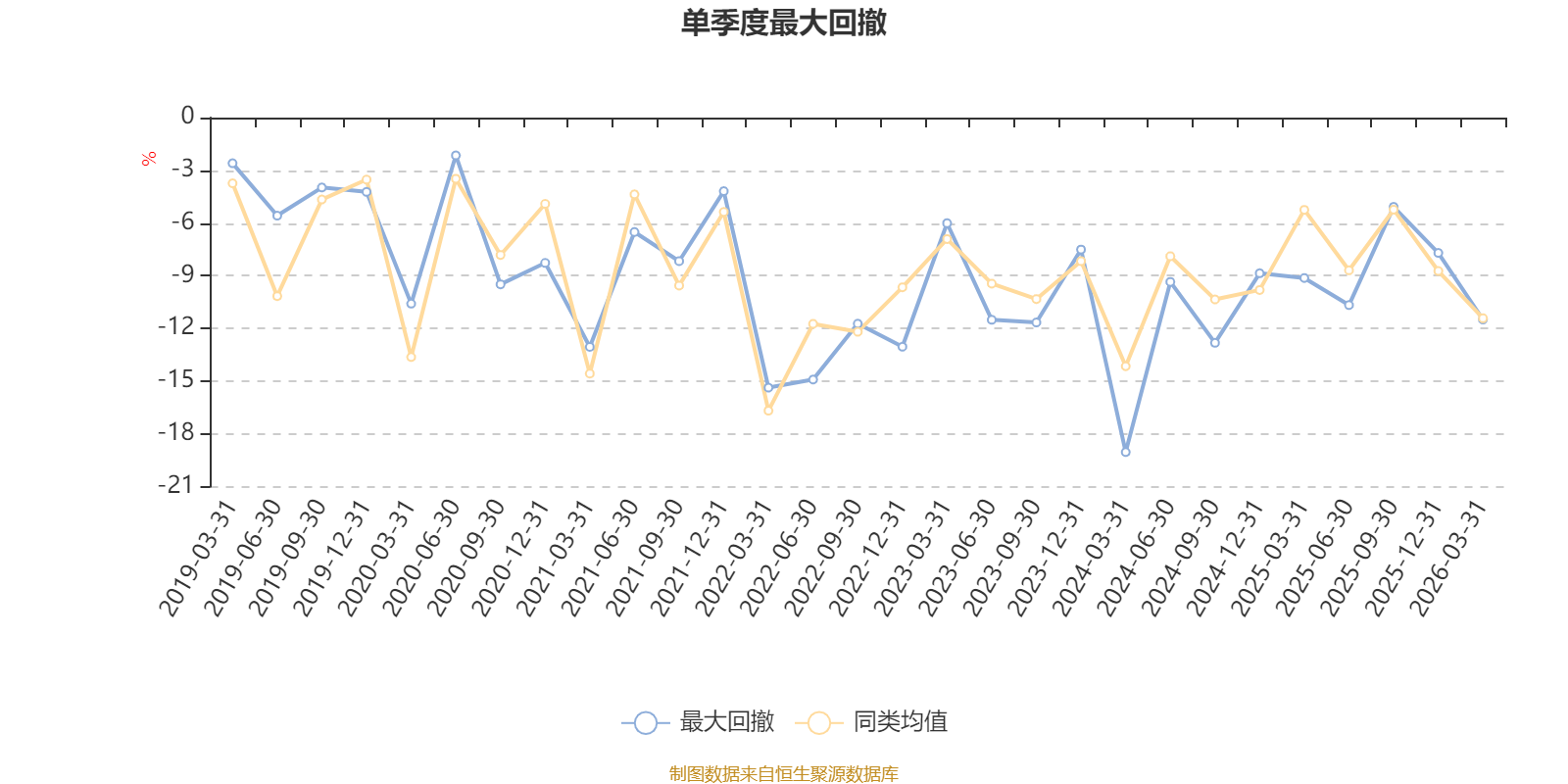 截至4月9日,基金近三年最大回撤为32.6%,同类可比基金排名709/1264。单季度最大回撤出现在2024年一季度,为19.04%。