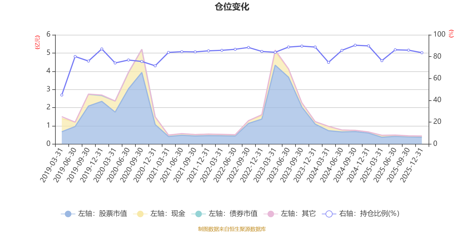 据定期报告数据统计,近三年平均股票仓位为85.35%,同类平均为72.57%。2024年三季度末基金达到90.44%的最高仓位,2019年一季度末最低,为44.83%。