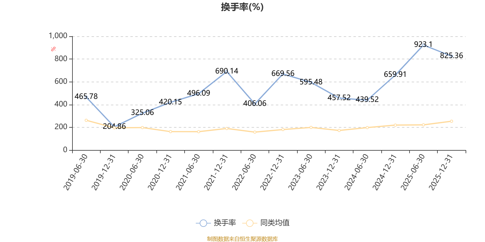 截至2025年12月31日,基金最近一年换手率约1718.52%,持续高于同类均值。