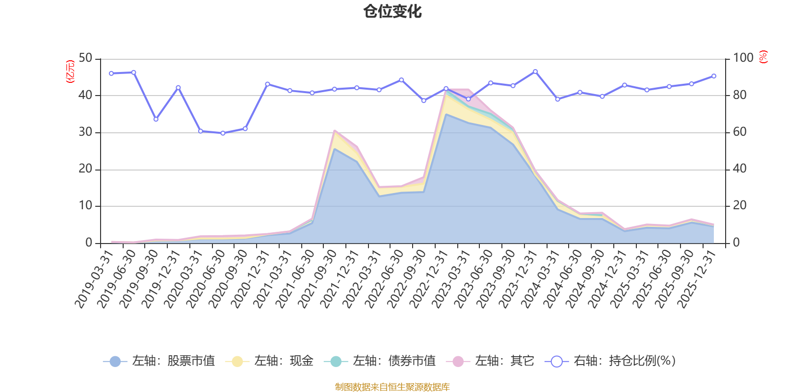据定期报告数据统计,近三年平均股票仓位为84.51%,同类平均为85.83%。2023年末基金达到93.09%的最高仓位,2020年上半年末最低,为59.7%。