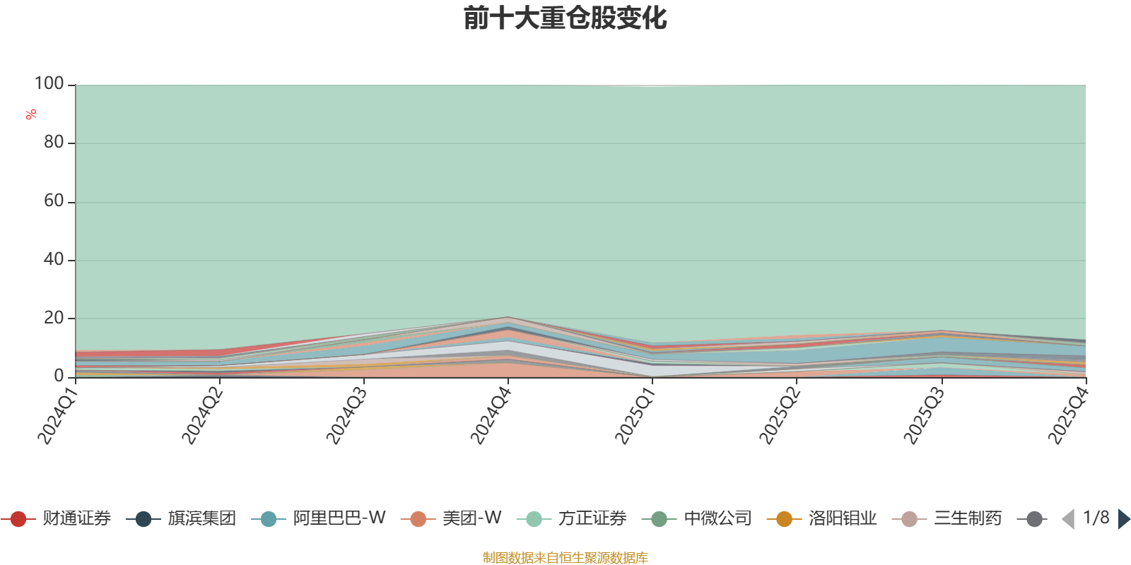 截至2025年末,基金十大重仓股分别是腾讯控股、新易盛、宁德时代、中际旭创、紫金矿业、中国平安、三生制药、美团-W、富维股份、蜜雪集团。