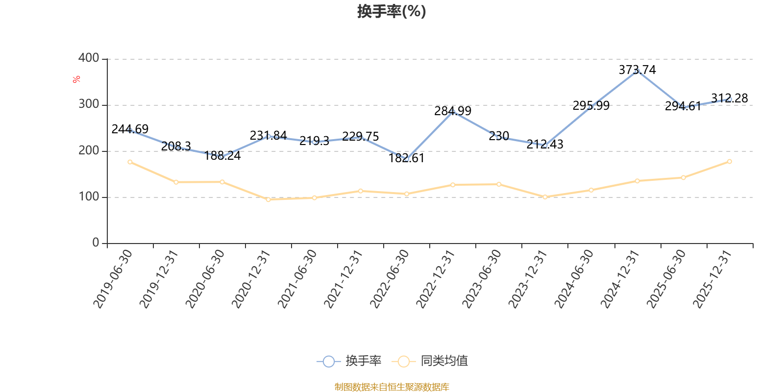 截至2025年12月31日,基金最近一年换手率约615.91%,持续高于同类均值。